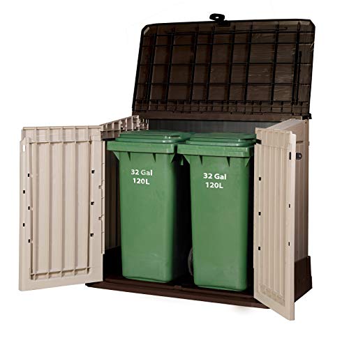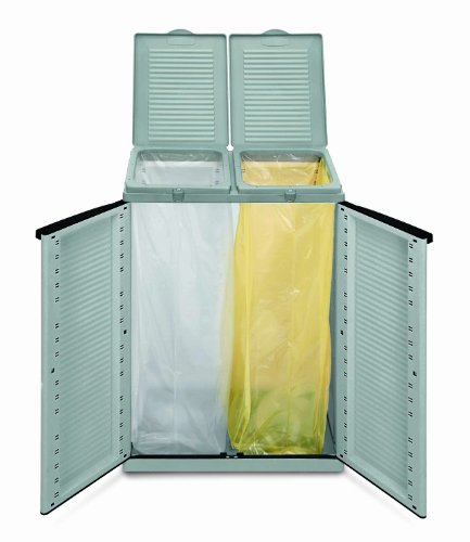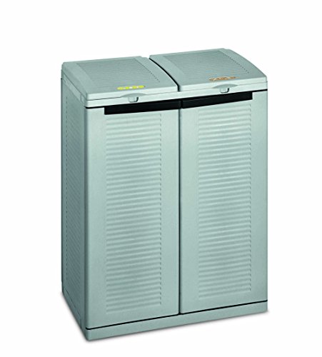 Ideal debajo de un saliente o en la terraza, este mueble con dos compartimentos es perfecto para que la clasificación selectiva no desbarate la papelera de la cocina demasiado rápido.